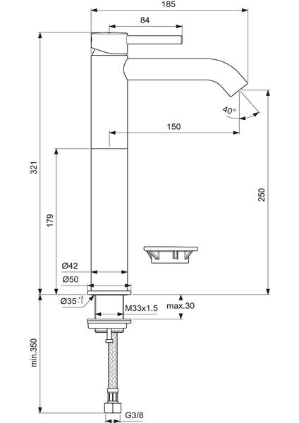 Ideal Standard BC269XG Ceraline Yüksek Lavabo Bataryası Mat Siyah Sifon Kumandasız-5 L/dk Metal Sifon Kumandalı. ; Ø28mm Kartuş. ; Isı limitleyici. ; 3/8” Çelik örgülü bağlantı hortumları. ; Aerator M21,5x1-5l/dk. ; Kırmızı mavi işaretli metal kumanda kolu. ; Kumanda kolu 100° dönebilir. ; Easy Fix montaj sistemi. ; Gürültü sınıfı 1. ; EN817 ile uyumlu. ; Sifon Kumandasız.;