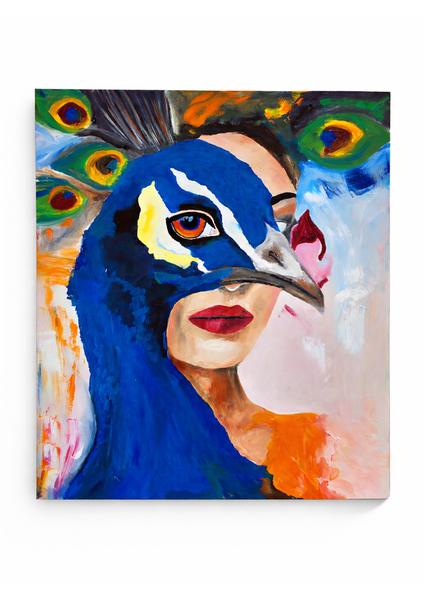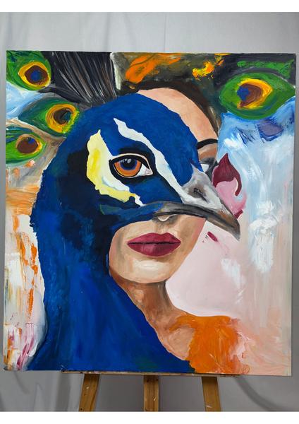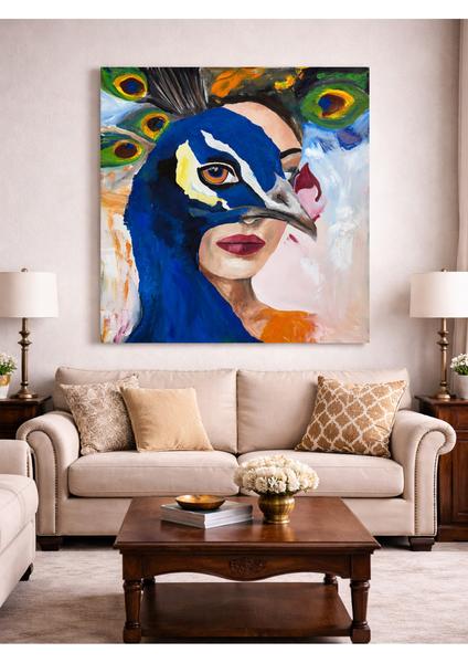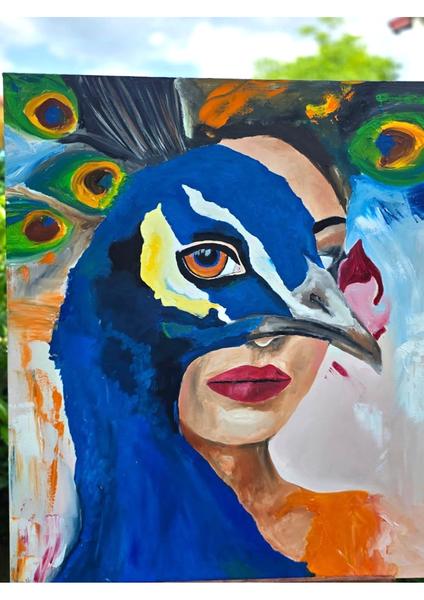 Derya G. Tavus Kuşu ve Kadın Yağlı Boya Tablosu - El Yapımı
