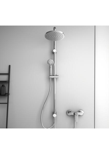 Ideal Standard Idealduo Tepe Duş Sistemi, el duşu ve tepe duşunu bir arada sunan yapısı ile banyolarda konforlu ve fonksiyonel bir duş deneyimi sağlar. Ayarlanabilir yüksekliği, su tasarrufu sağlayan özellikleri ve kireç önleyici yapısı ile günlük kullanıma uygundur.
